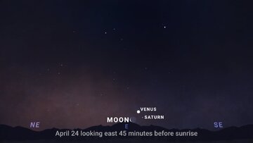 نگار علی- بامداد جمعه ۵ اردیبهشت ۱۴۰۴ (۲۵ آوریل ۲۰۲۵)، ساکنان نیم‌کره شمالی زمین شاهد پدیده‌ای نادر و چشم‌نواز در آسمان بودند: هم‌راستایی سه‌گانه ماه، زهره و زحل که از افق شرقی، شکلی شبیه به «صورتک خندان» در آسمان پدید آورد.