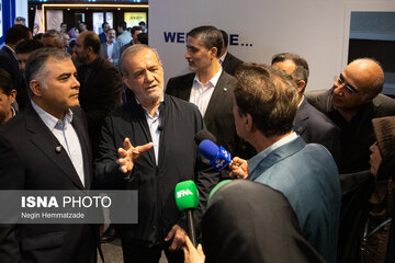 چهره خندان پزشکیان در نمایشگاه نفت/ وزیر هم آمده بود
