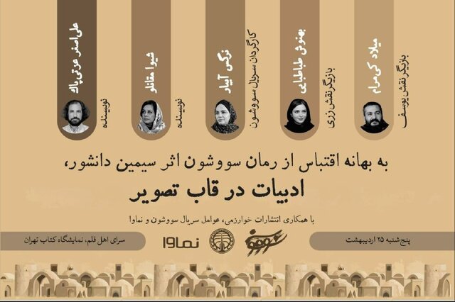 نشست «ادبیات در قاب تصویر»، به بهانه ساخت سریال «سووشون» اثر نرگس آبیار با اقتباس از رمان «سووشون» اثر سیمین دانشور در نمایشگاه کتاب برگزار میشود.