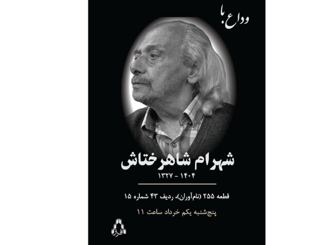 مراسم تشییع و خاکسپاری پیکر شاهرختاش، روز پنجشنبه، اول خرداد از ساعت ۱۱ در قطعه ۲۵۵ (نامآوران)، ردیف ۴۳، شماره ۱۵ برگزار خواهد شد.