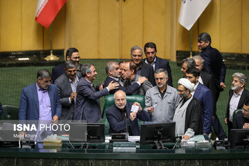 تصویری از لحظه سوگند یاد کردن اعضای جدید هیئت رئیسه مجلس