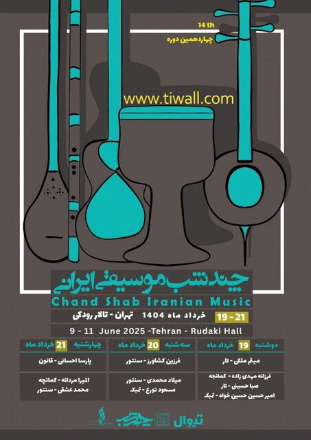 چهاردهمین دوره رویداد موسیقایی «چند شب موسیقی ایرانی» طی سه شب و از ساعت ۲۰ دوشنبه تا چهارشنبه، نوزدهم تا بیست و یکم خرداد در تالار رودکی برگزار میشود.