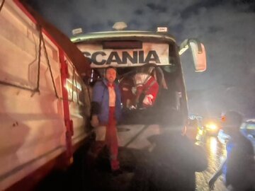 تصادف اتوبوس با ۲ دستگاه تریلر/ جزئیات