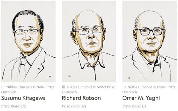 هر یک از این سه دانشمند، یعنی کیتاگاوا، رابسون و یاغی، سهم مساوی (یک سوم) در این جایزه خواهند داشت. این کشف که پتانسیل بالایی در علوم مواد و صنایع مختلف دارد، در کانون توجه کمیته نوبل قرار گرفت. مراسم اعلام رسمی جوایز نوبل در فاصله ۶ تا ۱۳ اکتبر هر سال برگزار میشود و تمامی اطلاعیهها به صورت زنده پخش میشوند.