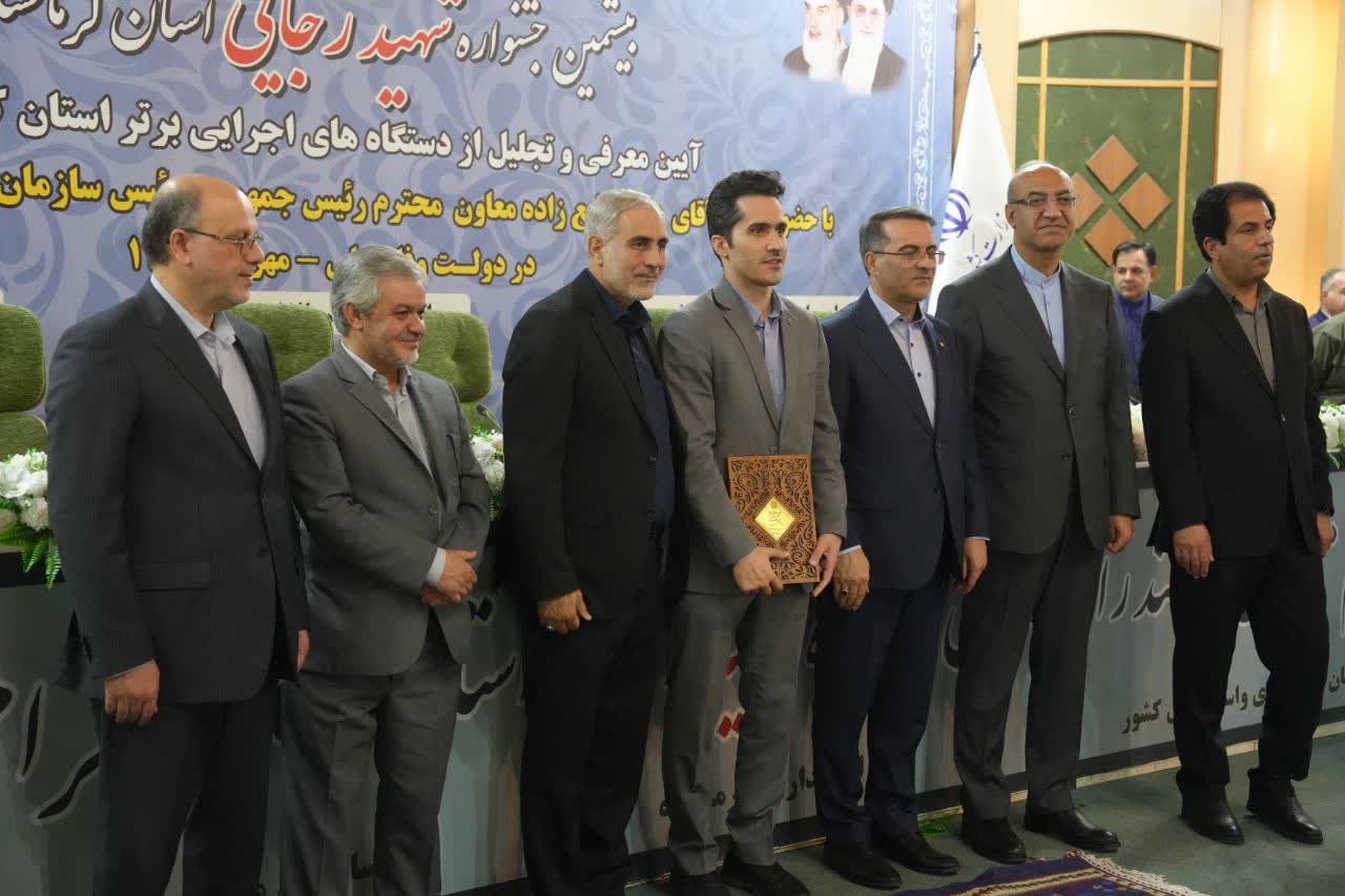 در بیستمین جشنواره شهید رجایی، با حضور معاون رئیس‌جمهور و رئیس سازمان اداری و استخدامی کشور و استاندار کرمانشاه از دستگاه‌های اجرایی برتر استان تقدیر شد.
