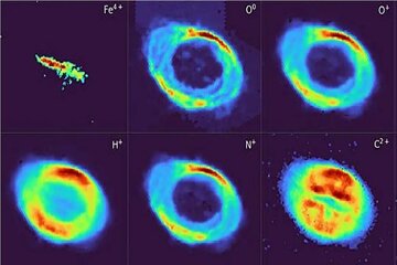 هنگامی که محققان دادهها را پردازش کردند و تصاویر مربوط به عناصر مختلف را اسکن کردند، چیزی بلافاصله جلب توجه کرد. درست در وسط سحابی، یک نوار باریک و شفاف وجود داشت که به شدت در نور ساطع شده از اتمهای آهن یونیزه شده میدرخشید.