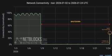 به گزارش سردبیر پرس، دادههای شبکه نشان میدهد که سطح دسترسی به اینترنت جهانی پس از سقوط ناگهانی در نوزدهم دیماه، همچنان در پایینترین سطح ممکن یعنی حدود یک درصد باقی مانده است. با وجود اینکه در ساعتهای اخیر یک بازیابی لحظهای و بسیار کوتاه در اتصال بینالمللی رصد شده، اما این دسترسی بلافاصله قطع گردید […]