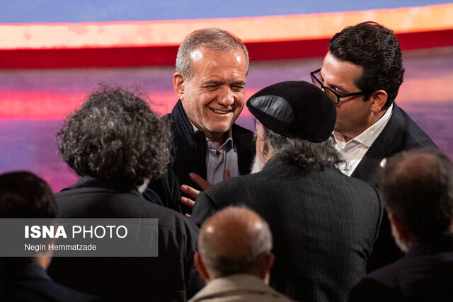آیین پایانی جشنواره فیلم فجر در حالی برگزار شد که در نیمه‌ی مراسم، مسعود پزشکیان رئیس جمهور به تالار وحدت آمد.