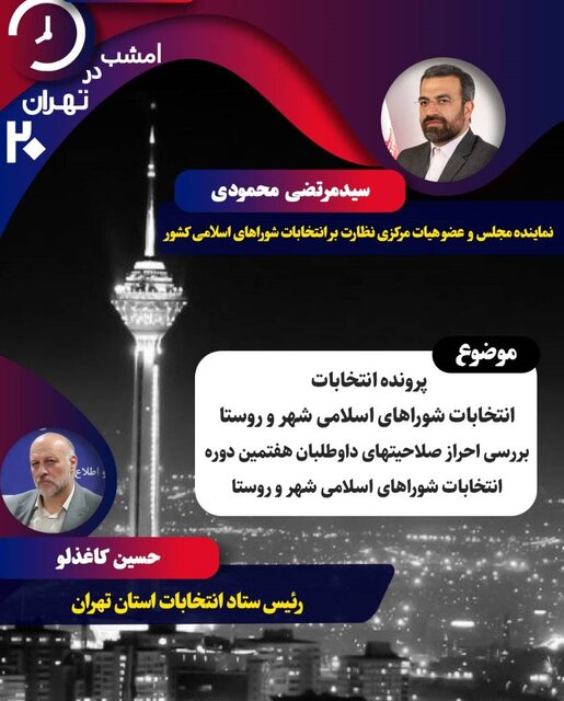 به گزارش سردبیر پرس، در این برنامه «سیدمرتضی محمودی»، نماینده مجلس و عضو هیات مرکزی نظارت بر انتخابات شوراهای اسلامی کشور و «حسین کاغذلو»، رئیس ستاد انتخابات استان تهران، به بررسی فرآیند تأیید و رد صلاحیت نامزدها و همچنین مسیر اعتراض داوطلبانی که صلاحیت آنها احراز نشده است، خواهند پرداخت. این برنامه به تهیهکنندگی «مجتبی احمدی» روزهای شنبه تا چهارشنبه ساعت ۲۰ روی آنتن شبکه تهران سیما میرود.